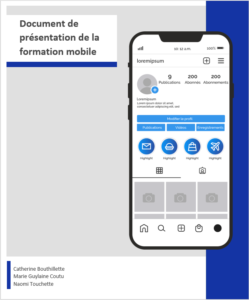 Réalisé en équipe dans le cadre du cours TEN–7006 – Design de systèmes d’enseignement et de formation, l’idée était de réaliser la conception d’une formation mobile interactive d’une quinzaine de minutes dans l’intention d’un futur développement sur Storyline 360. Elle devait répondre à un besoin d’apprentissage ciblé dans l’analyse de besoin préalablement réalisée avec le client.